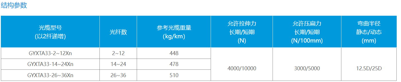 性能:长飞公司 GYXTA33 松套管材料本身具有良好的耐水解性能和较高的强度